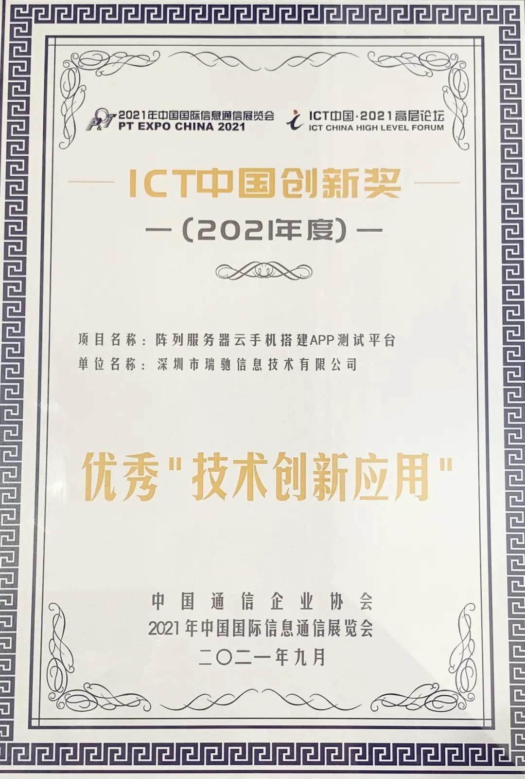 同時(shí),陣列式服務(wù)器云手機(jī)搭建APP測試平臺(tái)項(xiàng)目,榮獲2021年度ICT中國創(chuàng)新獎(jiǎng),被評(píng)為優(yōu)秀“技術(shù)創(chuàng)新應(yīng)用”,得到業(yè)界的高度認(rèn)可。
