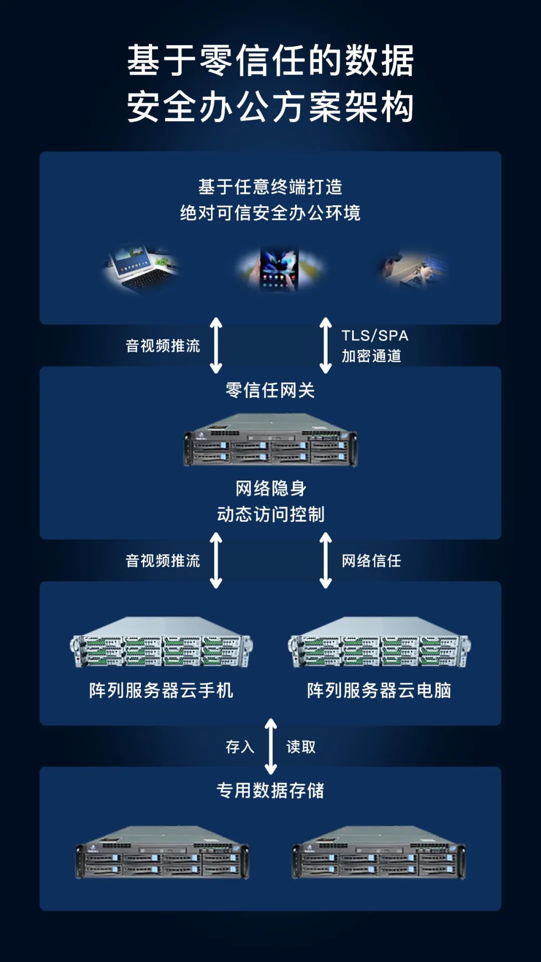 瑞馳與合作伙伴面向黨政央企、公檢法司等聯(lián)合推出基于零信任的云手機安全辦公方案,讓任意終端絕對安全接入內(nèi)外網(wǎng)辦公成為可能。
